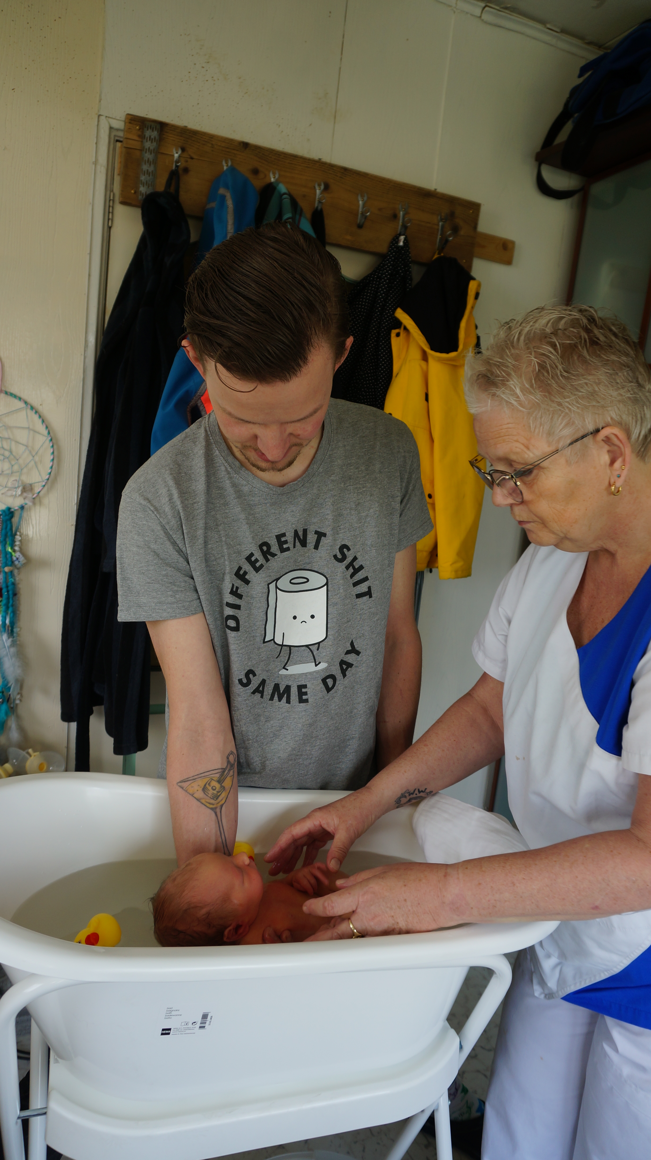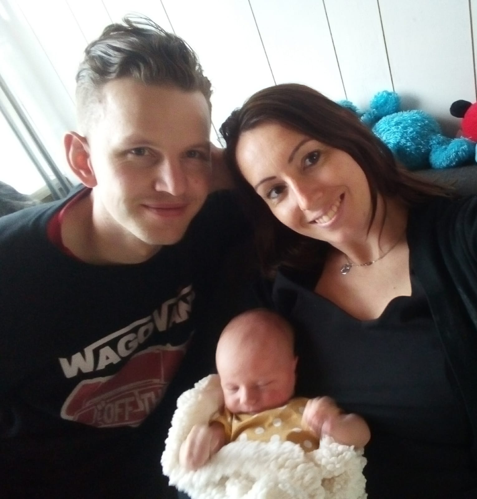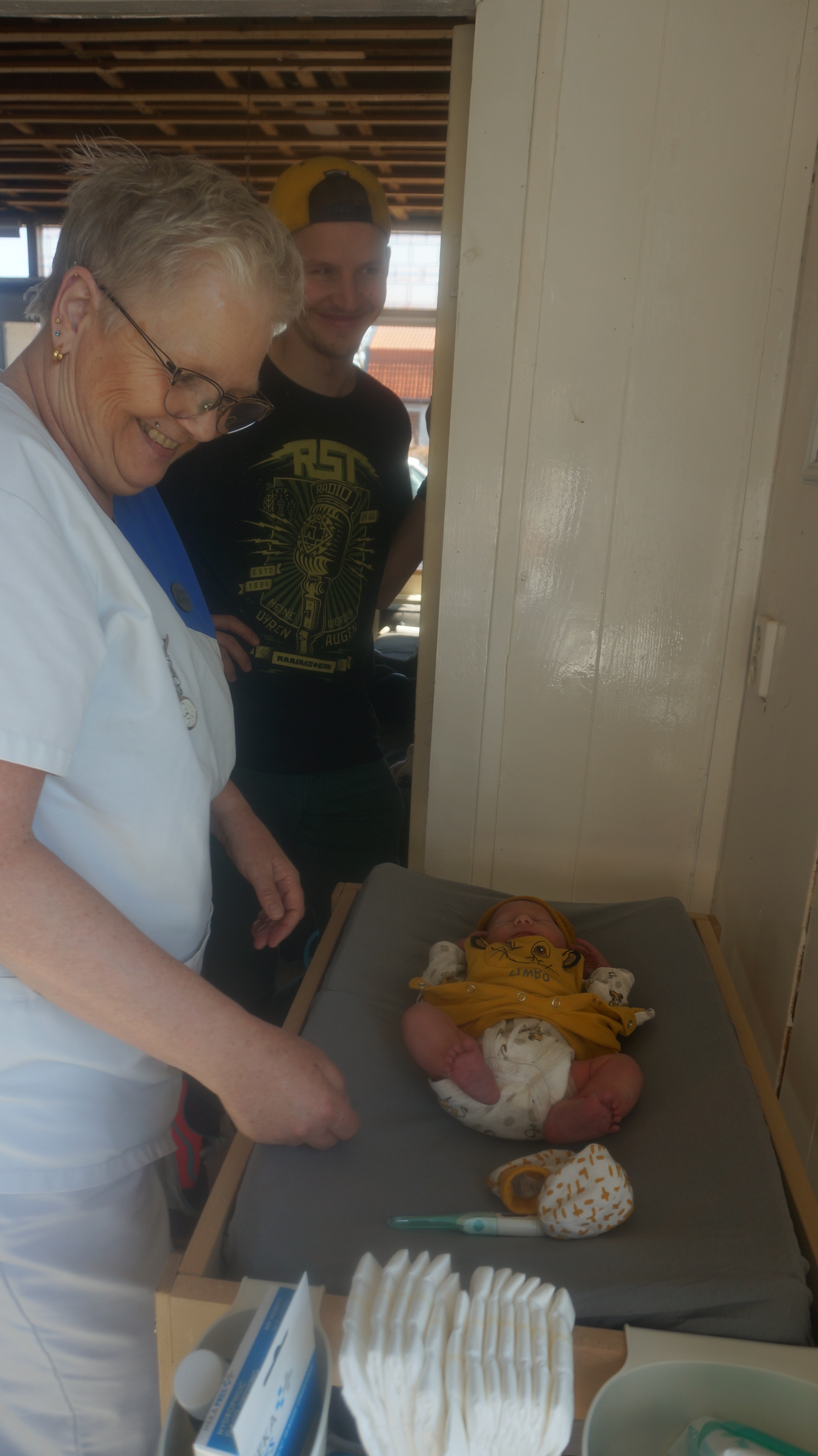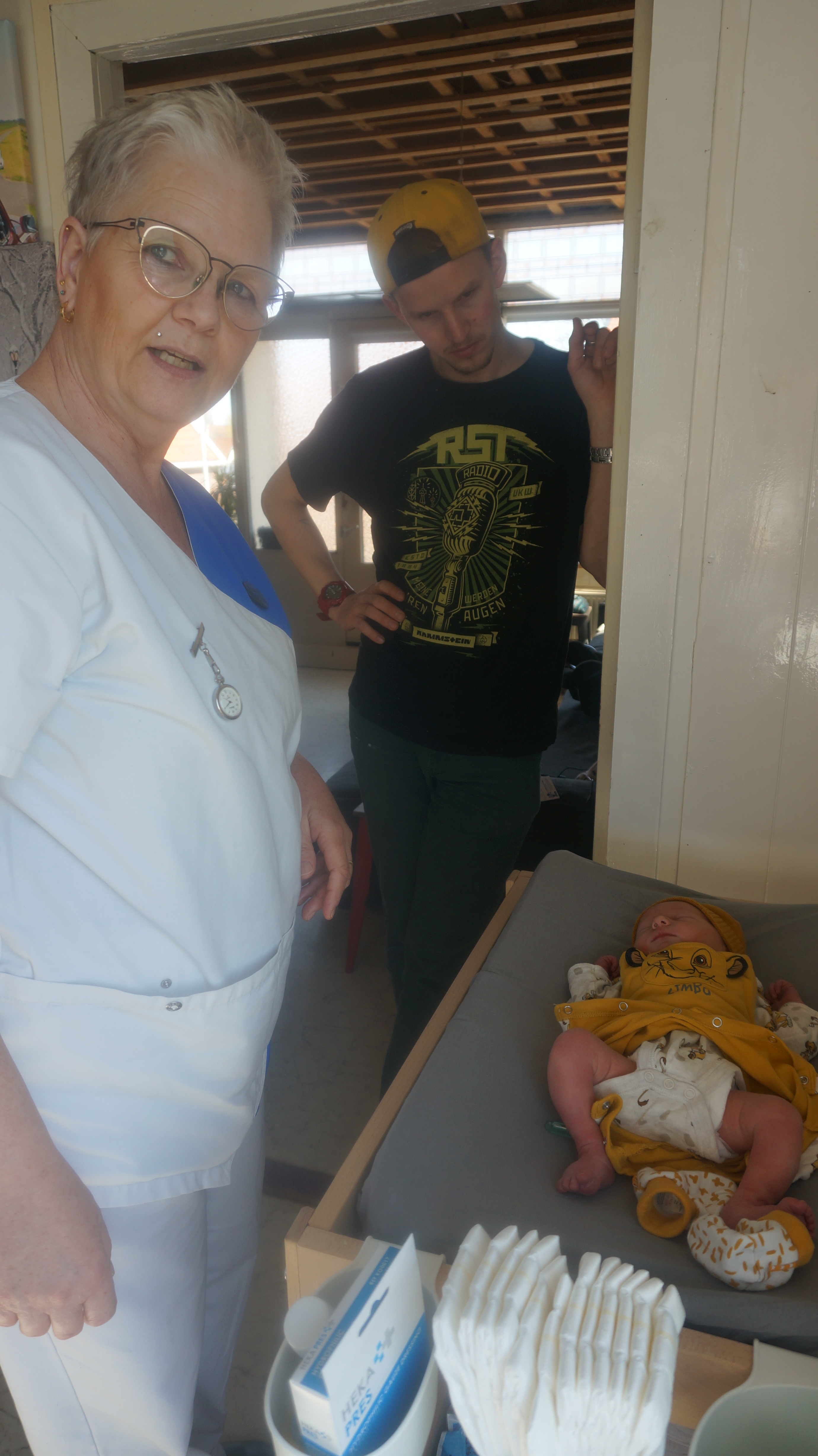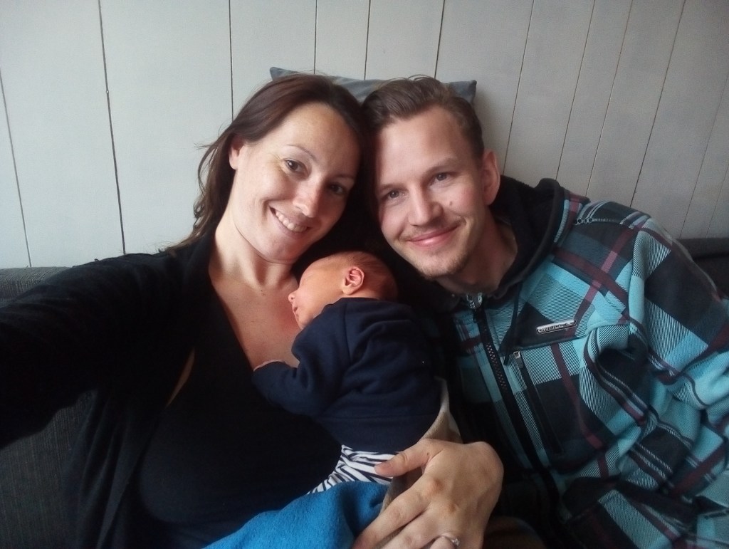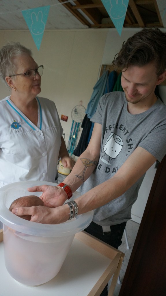 En toen ons zoontje Neill op de wereld kwam, ook de beste zorg voor hem. Dankzij Janet hebben we prachtige foto’s dat Neill bij hem borst op borst ligt, dat wij met zijn 3en liggen en dat Neill onderzocht wordt. Wij moesten een paar uurtjes in het ziekenhuis blijven, omdat Neill in het vruchtwater had gepoept en even ter observatie moest blijven. Om 12.00 uur mochten we naar huis en om 13.00 uur was Janet bij ons thuis om de eerste opstart te doen.