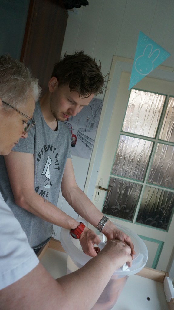 Neill werd de tweede dag een beetje gelig en dronk niet zo goed aan de borst. Janet regelde dat we een huurkolf konden ophalen bij Medipoint. En legde mij het kolven uit. En drukte mij op hart dat het niet om de opbrengst, maar om de stimulatie ging. En uiteindelijk kwam het inderdaad op gang. En ging de onzekerheid, die er onbewust bij mij zat ook weg. Waardoor het aanleggen ook weer soepeler ging. En zo kwamen we in de vicieuze cirkel omhoog. Janet doet dit werk al heel lang, waardoor ze veel know how heeft. Waardoor je in de kraamtijd veel informatie krijgt, maar je mag altijd alles vragen . En al vraag je hetzelfde 10x, dan nog legt ze het geduldig nog een keer uit. En evt. met een ander voorbeeld waardoor de informatie beter land in je hoofd.