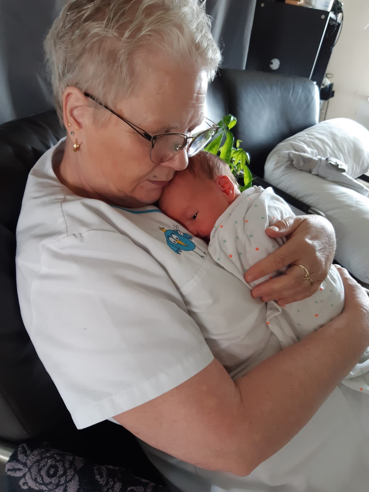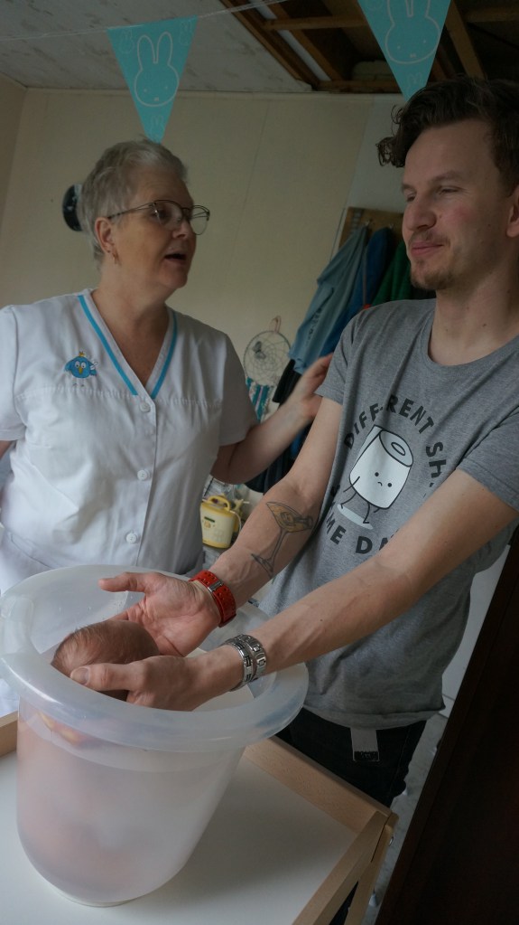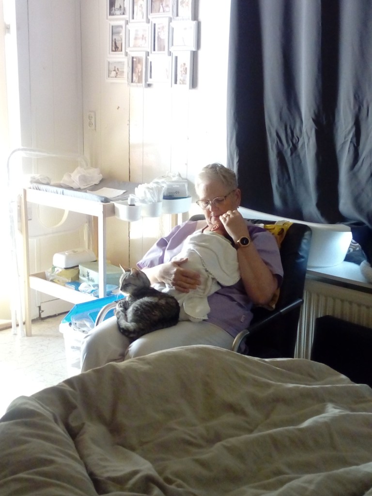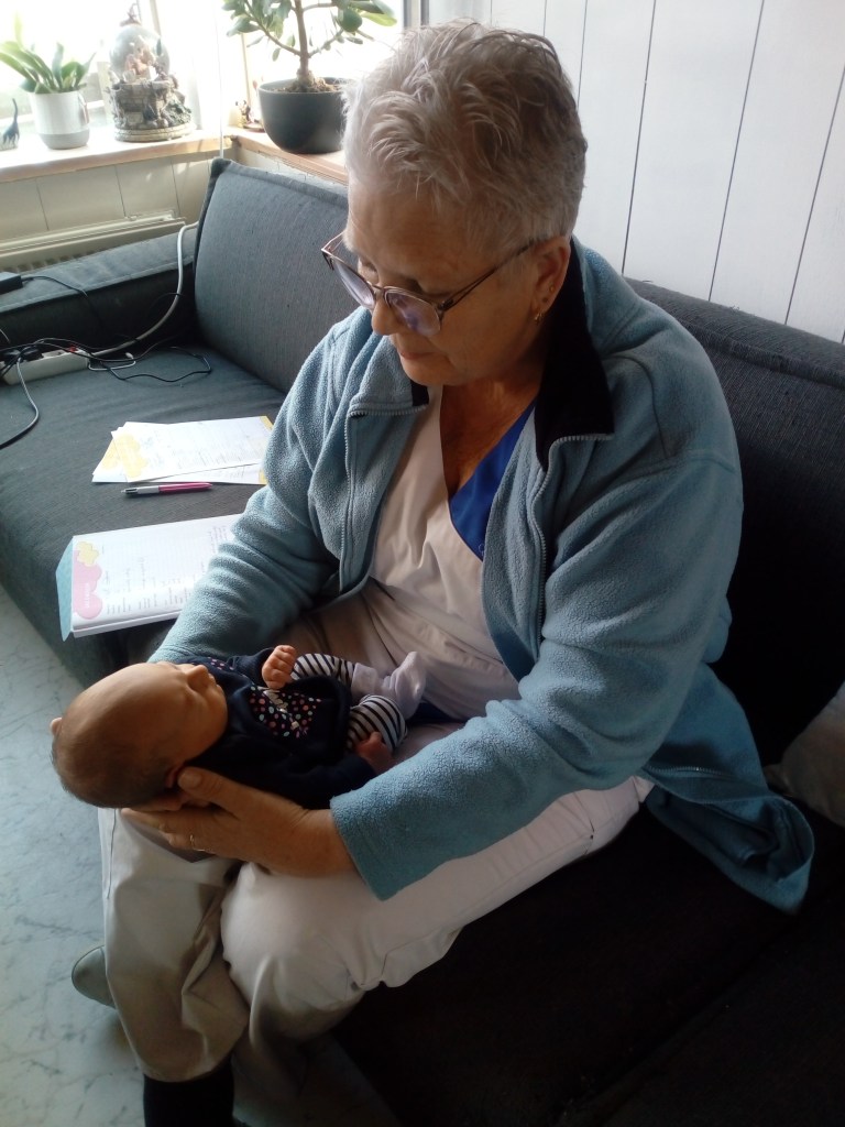 de hele kraamweek mocht ik de zorg op mij nemen. Het lukte goed om mijn professionele pet op te zetten, maar ook heerlijk te genieten van mijn kleinzoon, terwijl de ouders lagen te slapen