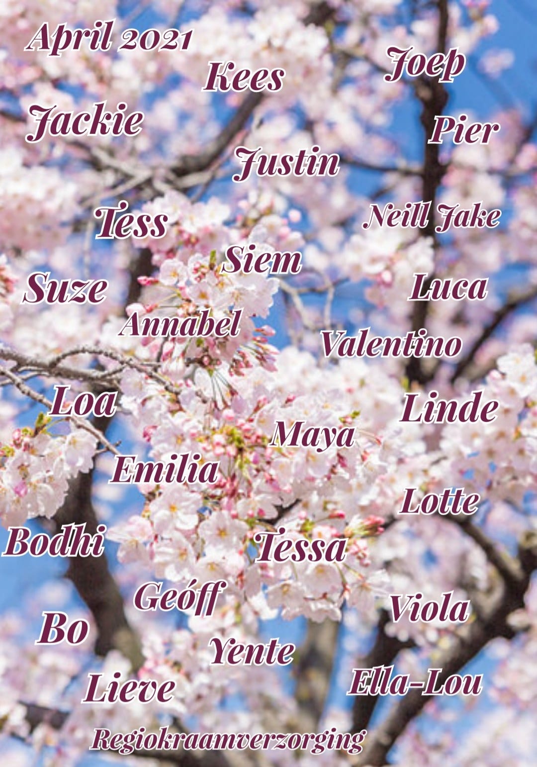 Foto 1: Alle baby’s geboren in de maand april van regiokraamverzorging, waaronder NEILL JAKE 27-04-2021