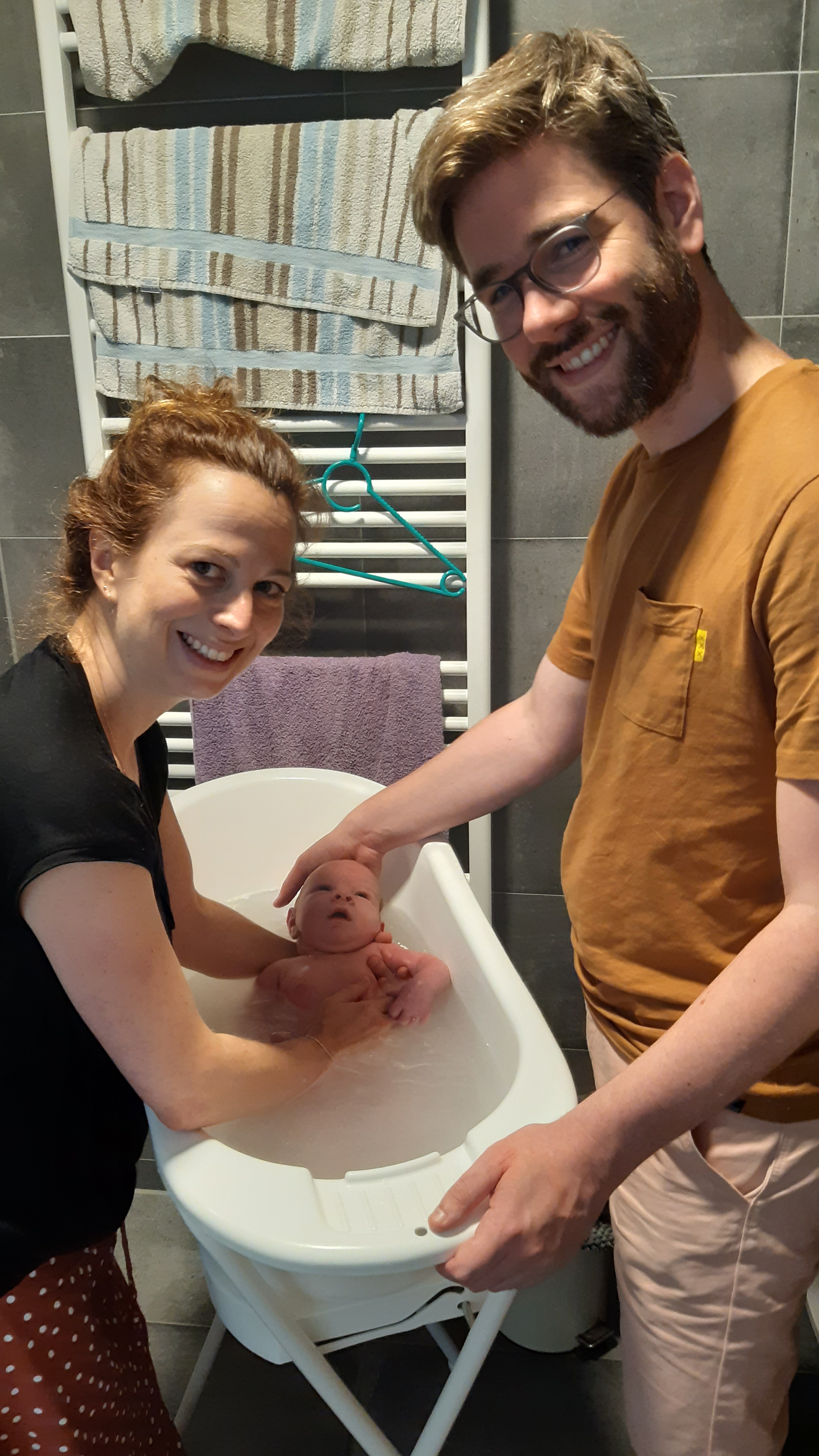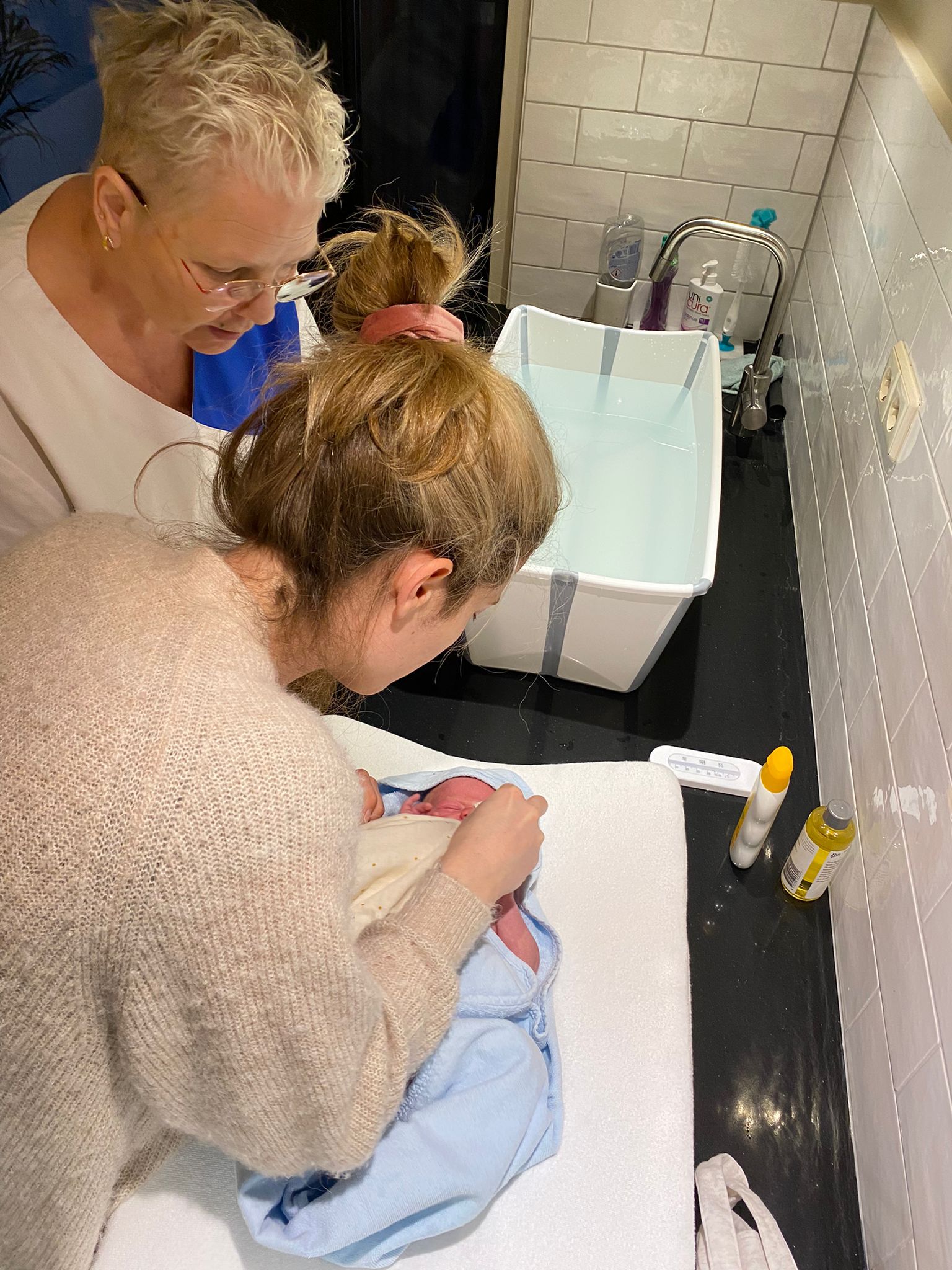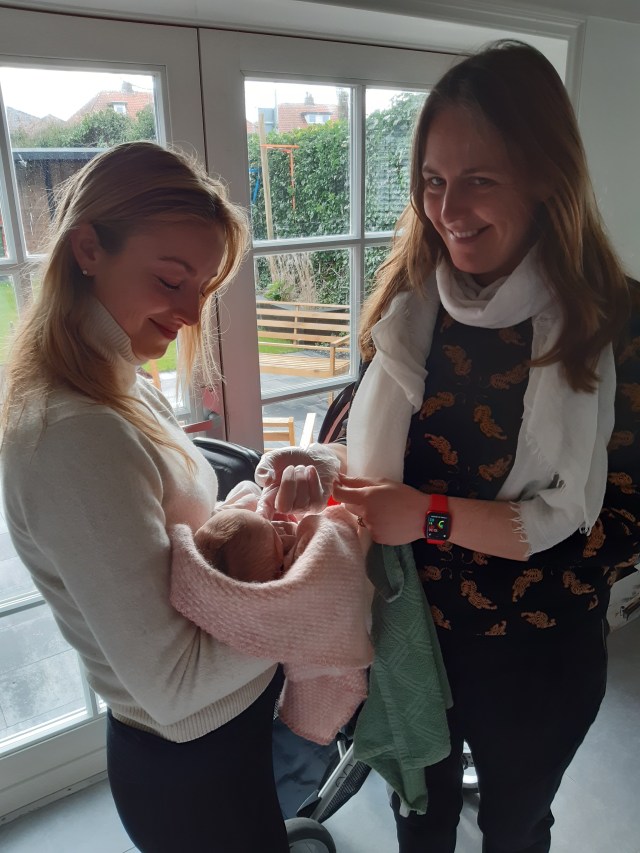 Via whatsapp bleef Janet op de hoogte en toen wij slechts 10 minuten thuis waren stond Janet al op de stoep! Heel fijn, want als kersverse ouders voelden wij ons redelijk hulpeloos.