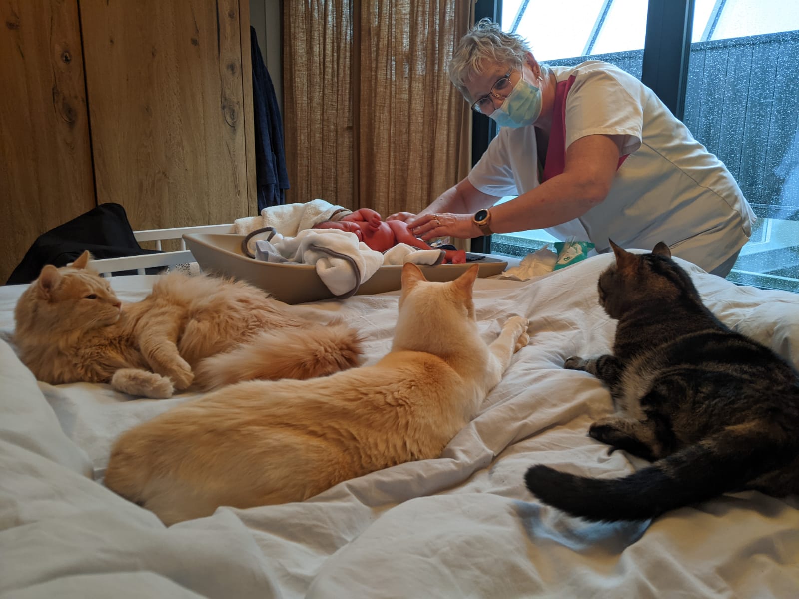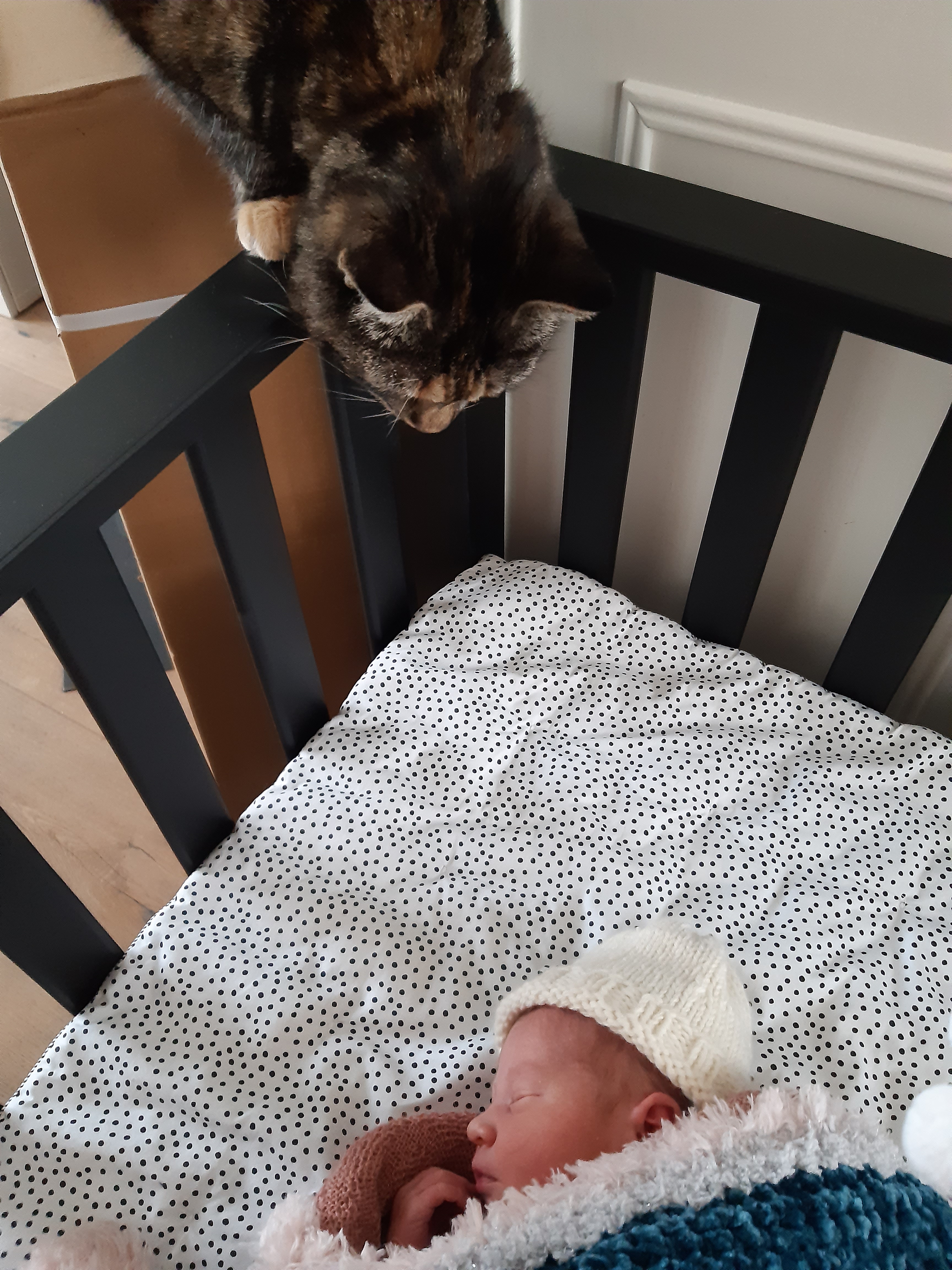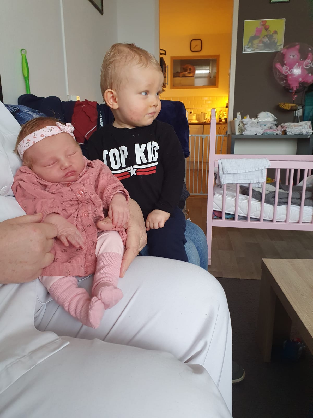 Via whatsapp bleef Janet op de hoogte en toen wij slechts 10 minuten thuis waren stond Janet al op de stoep! Heel fijn, want als kersverse ouders voelden wij ons redelijk hulpeloos.