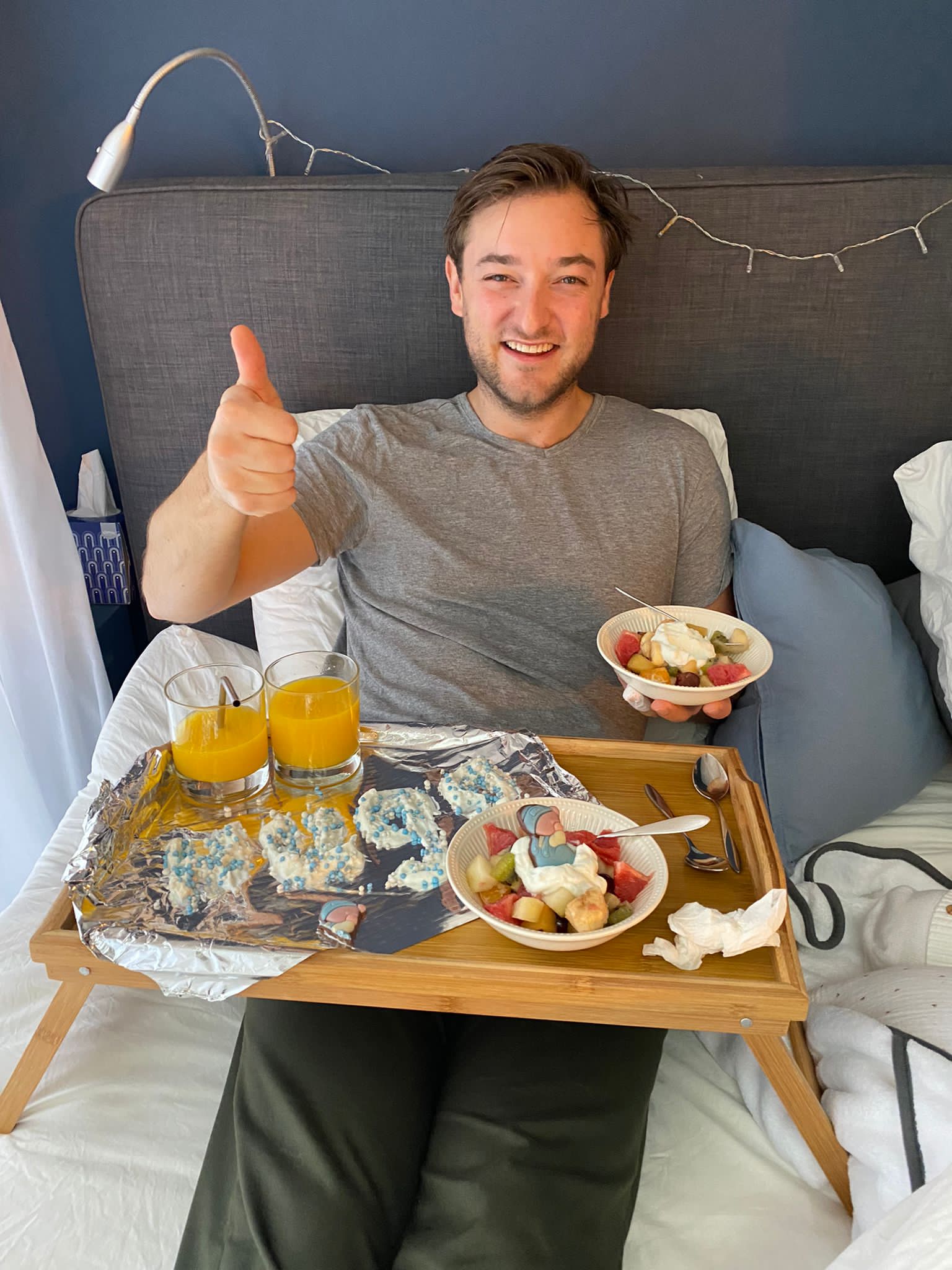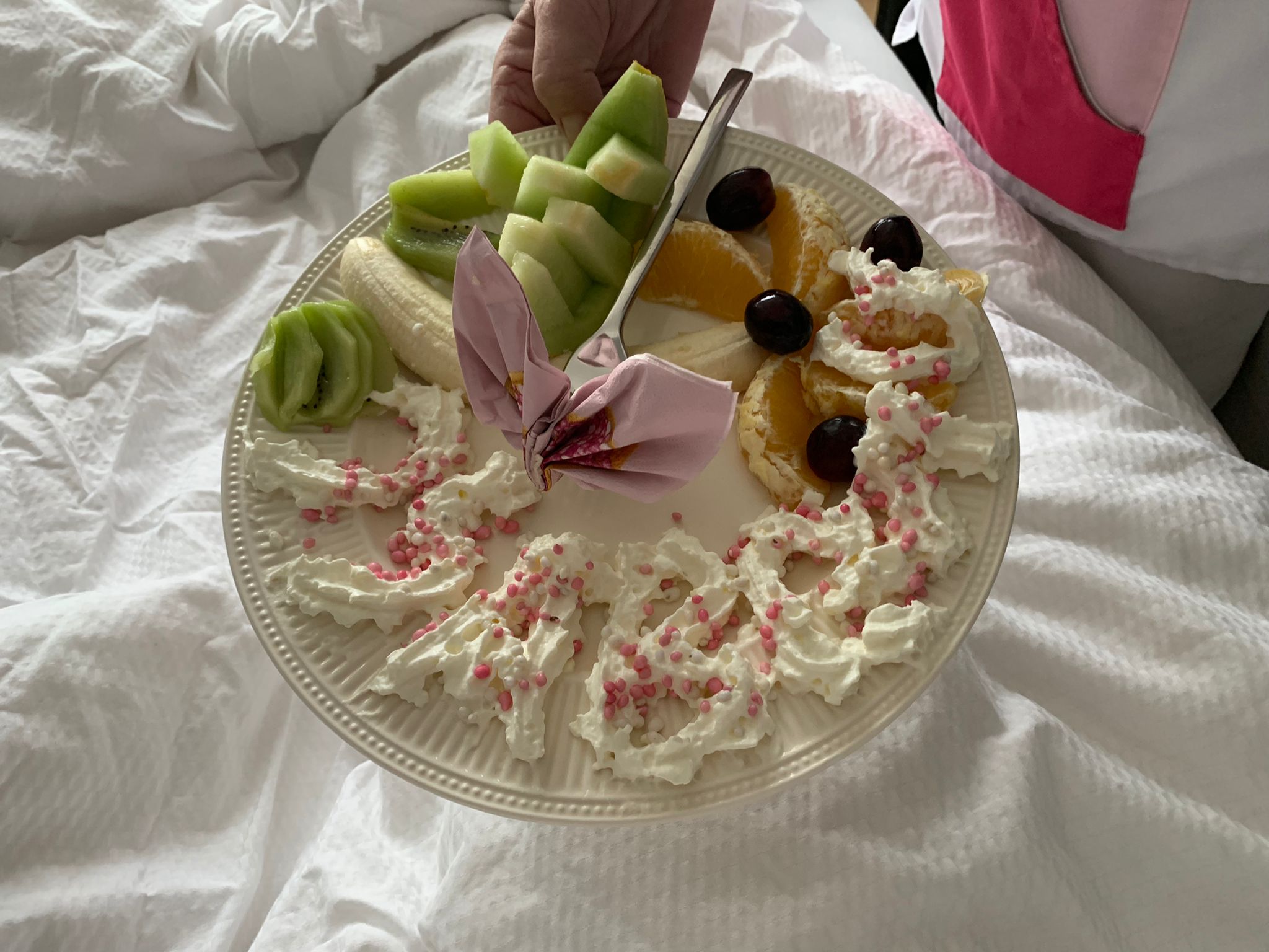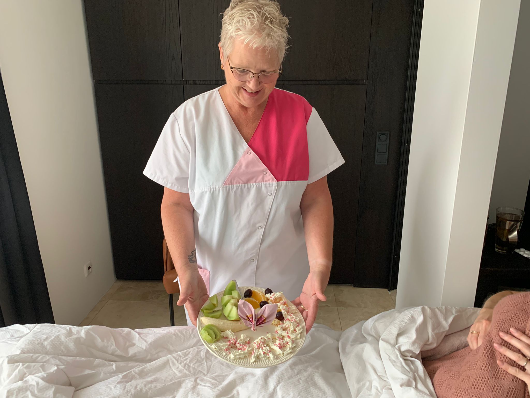 Eline en ik zijn echte doorzetters en kunnen soms ook even te veel hooi op onze vork nemen. Jij zag dit gebeuren en verzocht ons dat wij even moesten bijslapen terwijl jij ondertussen op Hugo paste. Na anderhalf uur slaap werden we verrast door jou met o.a. een heerlijke fruitsalade (dit waren oprechte kunstwerken!) en een schoon huis!
